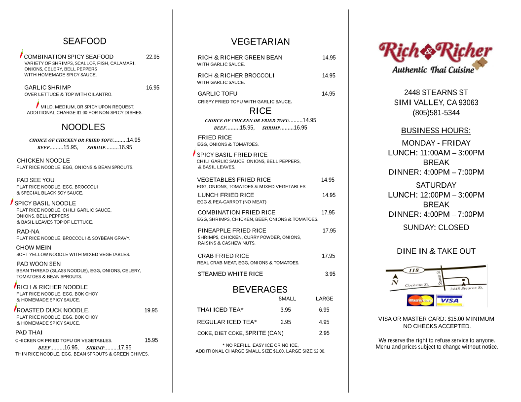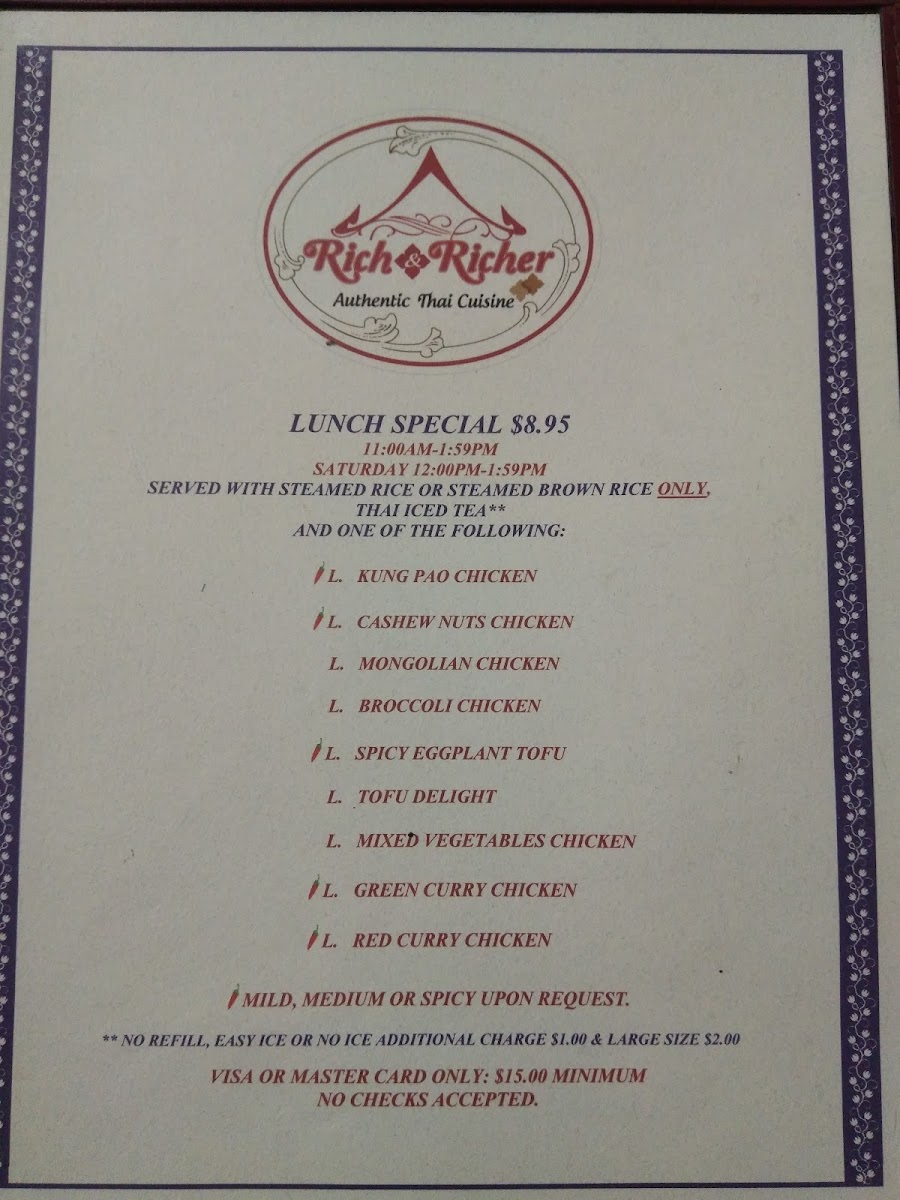 Rich & Richer Authentic Thai Cuisine Menu